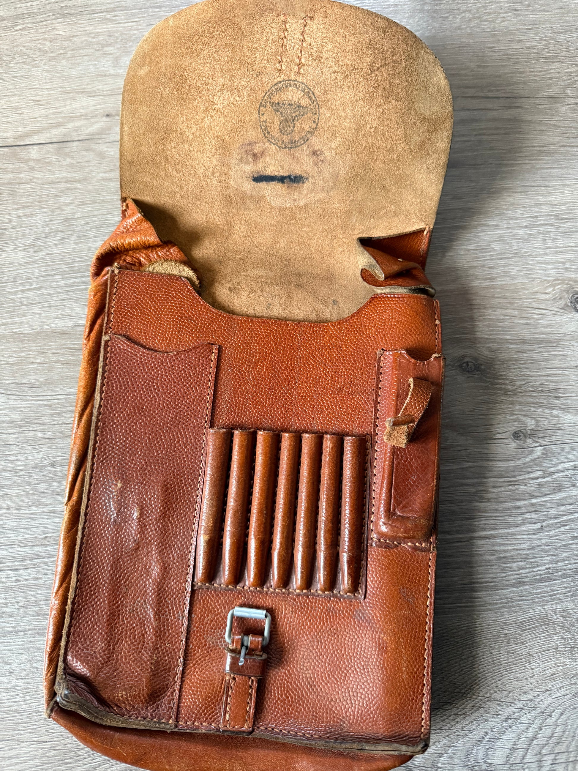 This is an original Luftwaffe Flieger-Kartentasche, the standard flight map case issued to German pilots and aircrew during World War II. Unlike the heavier leather Meldekartentasche used by ground officers, the flight version was produced from lighter leather or canvas for easier use in the cockpit.
